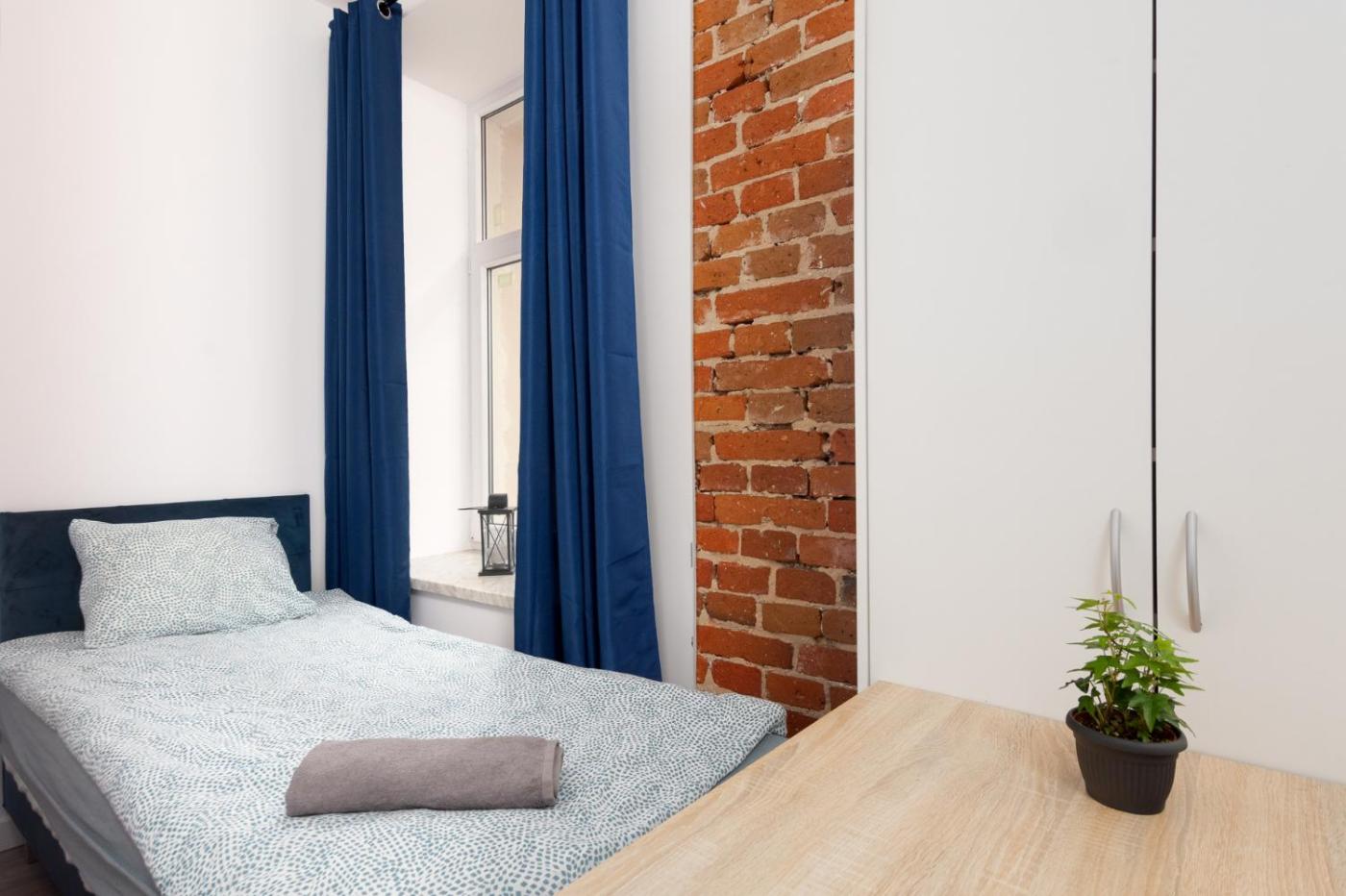 Apartament z 1 sypialnią. The apartment features 1 bedroom and 1 bathroom with a shower and bathrobes. In the kitchen, guests will find a stovetop, a refrigerator, a microwave and an electric kettle. The apartment provides a washing machine and heating. The unit offers 2 beds. Apartament - 2 osobowy. Powierzchnia pokoju ok.: 18 mkw.