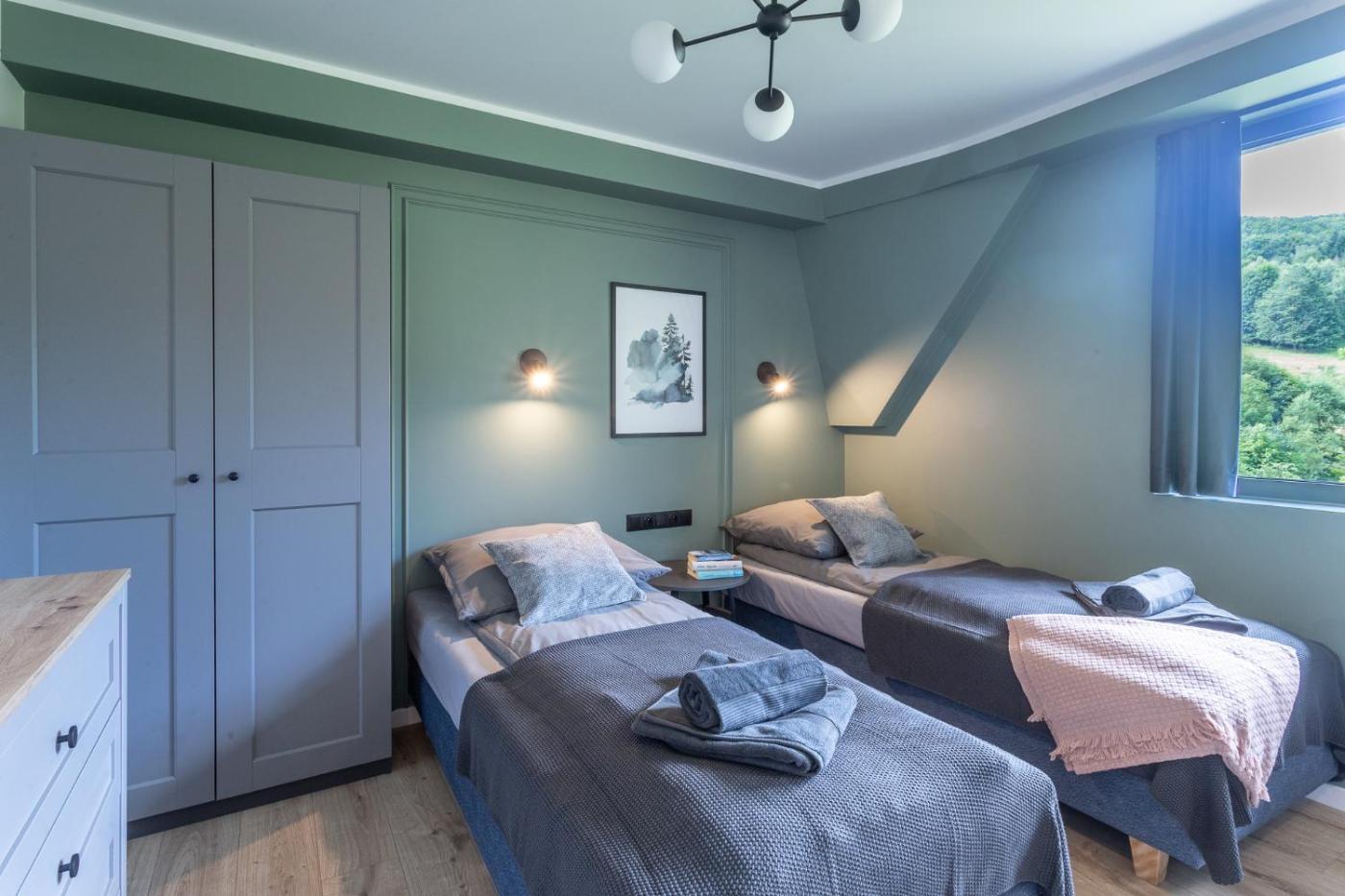 Pokój z 2 łóżkami pojedynczymi i prywatną łazienką poza pokojem. Featuring free toiletries, this twin room includes a private bathroom with a shower and a hairdryer. The twin room has parquet floors and features a tea and coffee maker, a wardrobe and mountain views. The unit has 2 beds. Pokój z 2 łóżkami pojedynczymi - 2 osobowy. Powierzchnia pokoju ok.: 11 mkw. ;